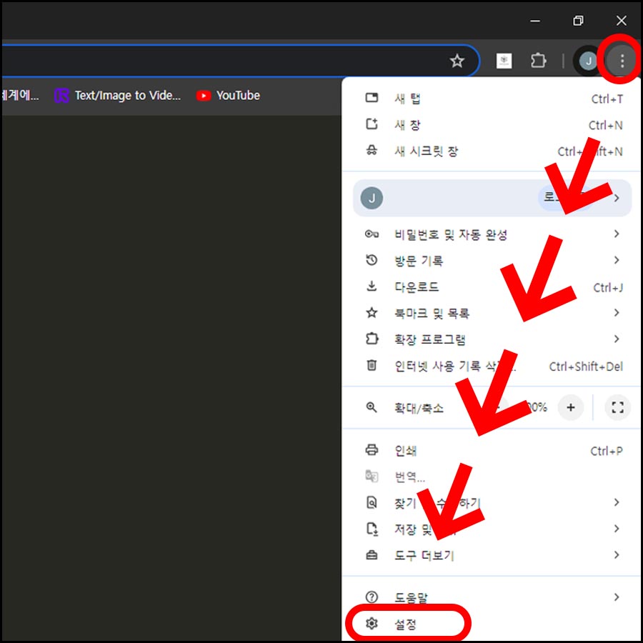 점 3개 메뉴를 클릭하고, 제일 아랫쪽에 설정을 찾아서 눌러주세요.