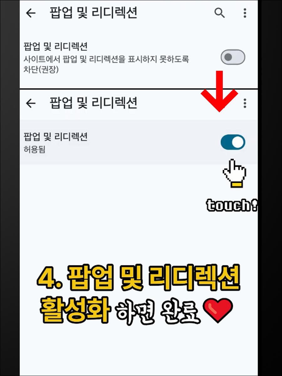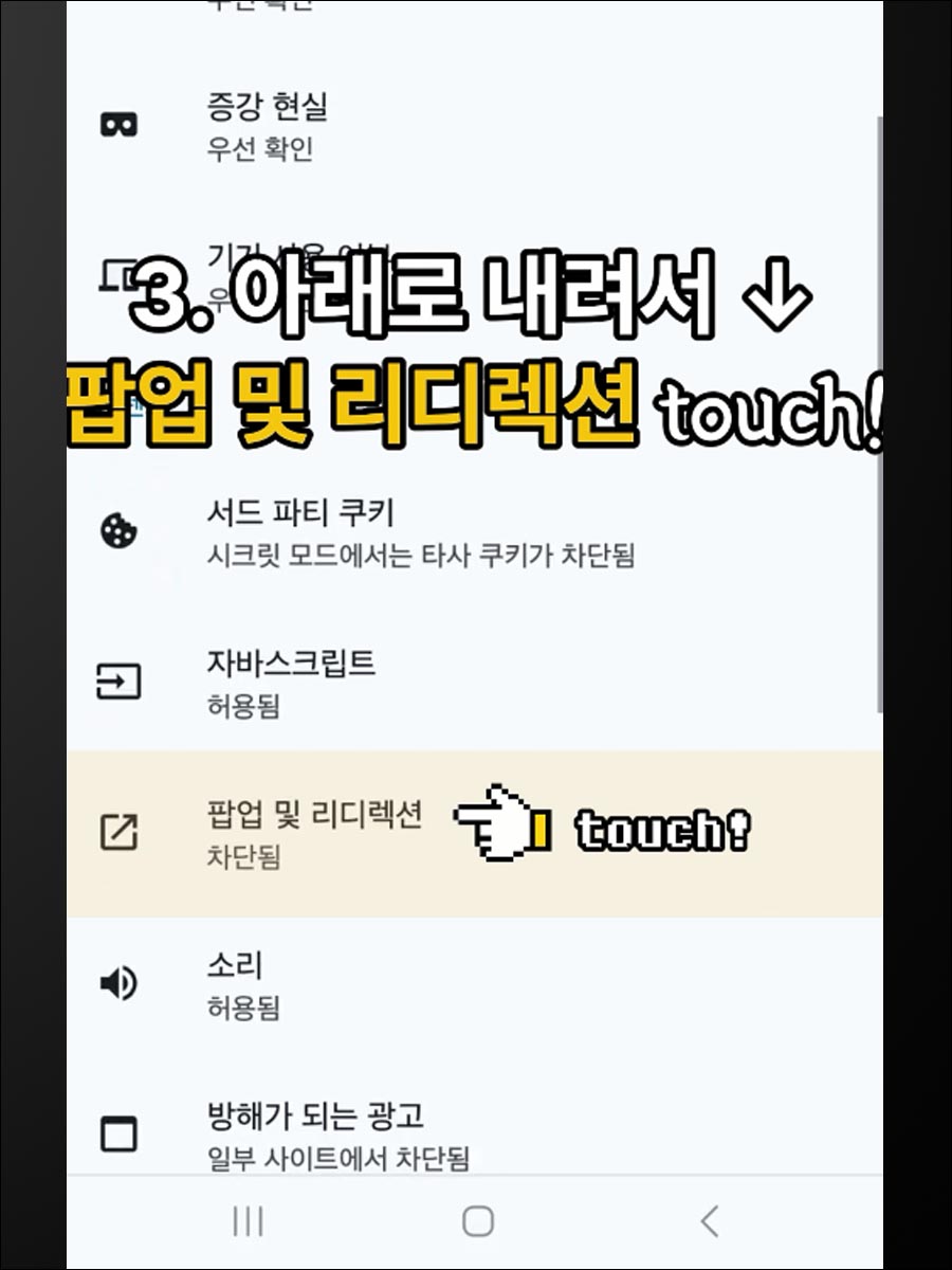 3. 크롬 팝업차단 해제 방법 : MOBILE