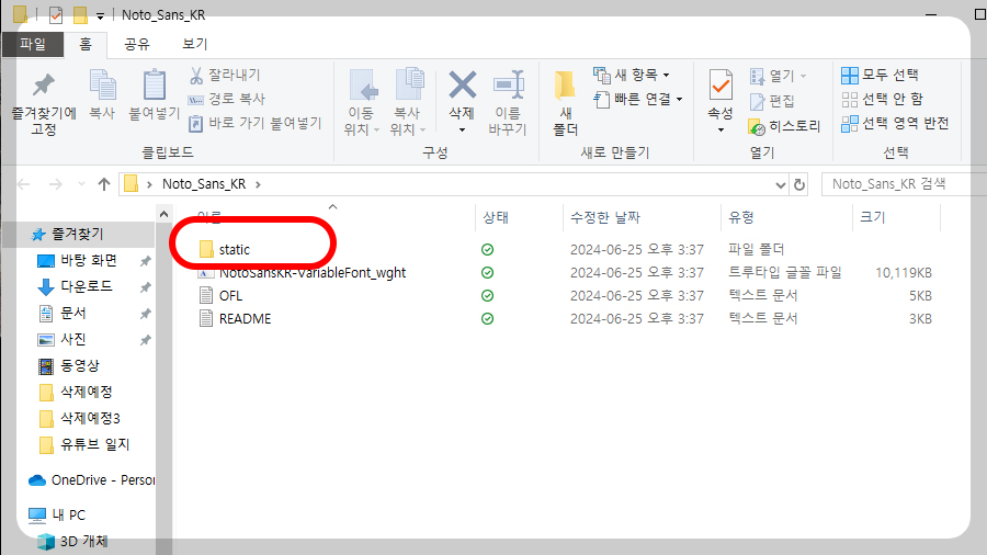 다운받은 노토산스 파일의 압축을 풀어줍니다.