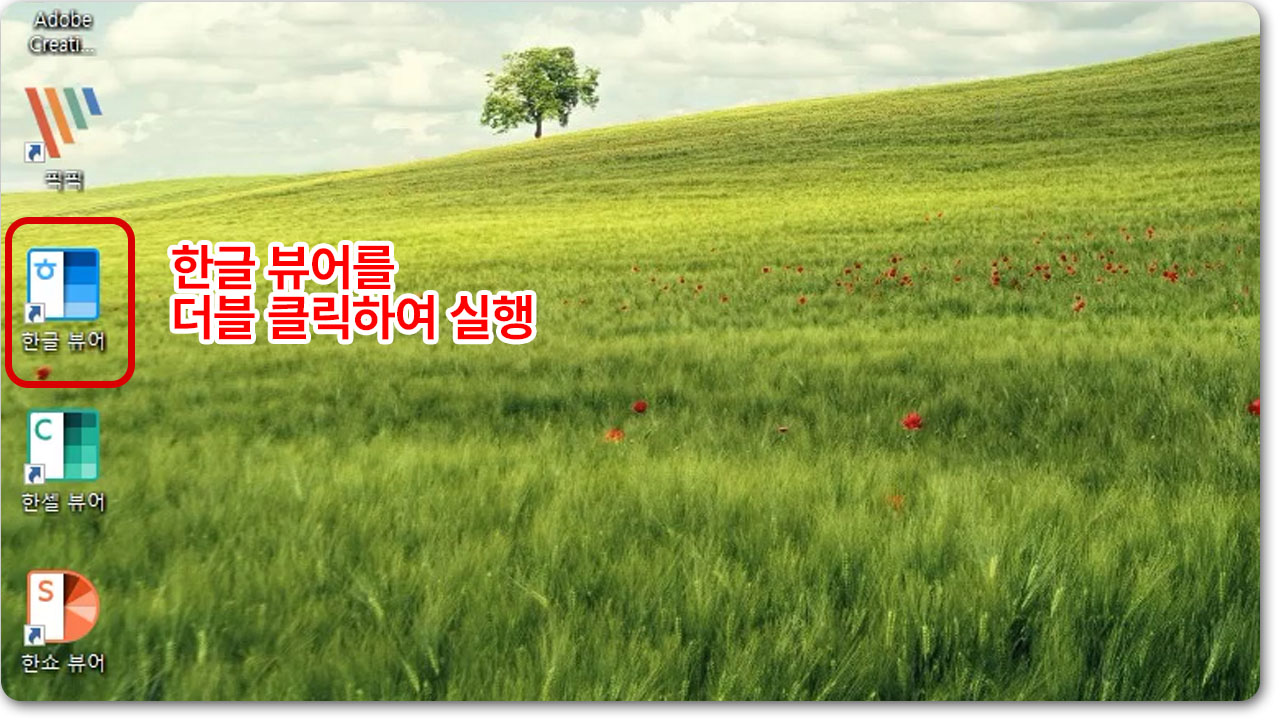 1. 바탕화면에 한글 뷰어 단축 아이콘을 더블 클릭하여 실행합니다.