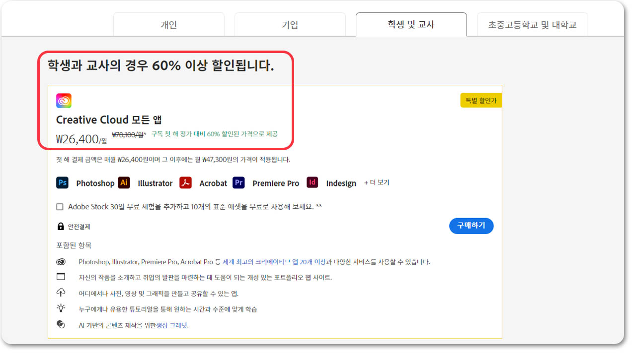 하지만 여기서 추가로 어도비 할인을 받을 수 있답니다! 바로 확인해 보시죠!😎